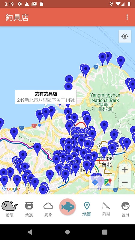 1. 全台灣公開釣獲,釣點,釣具店,釣蝦場等地圖資訊。
