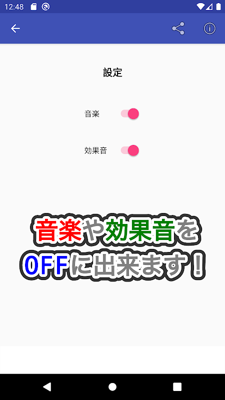 Vous pouvez activer / désactiver la musique et les effets sonores à partir de l'écran de réglage.