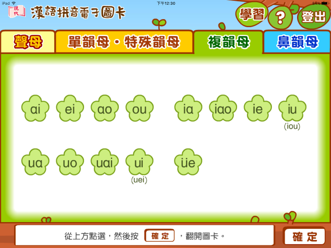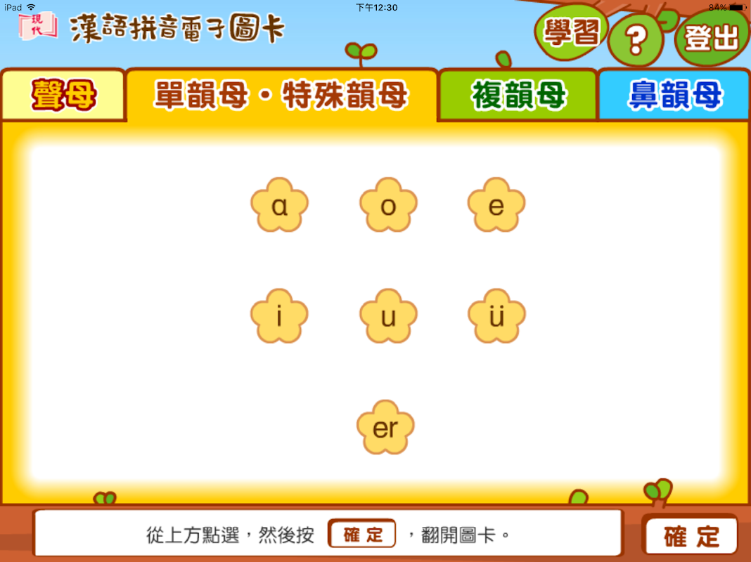 每張圖卡均提供朗讀功能,學生通過反覆模仿朗讀,學會聲母、韻母和字詞音節的正確發音。