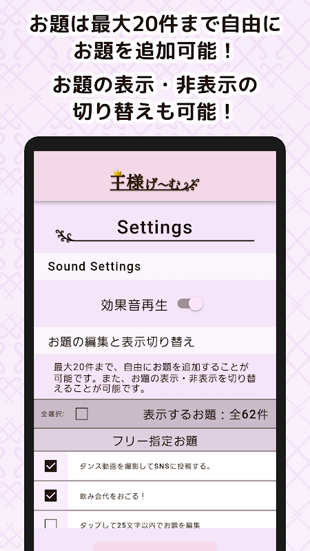 Le jeu du roi qui décide du "roi" est ancien ! ?? Le "Roi" est dans votre smartphone ! « Qui », « qui » et « quoi faire » sont à la discrétion du roi !