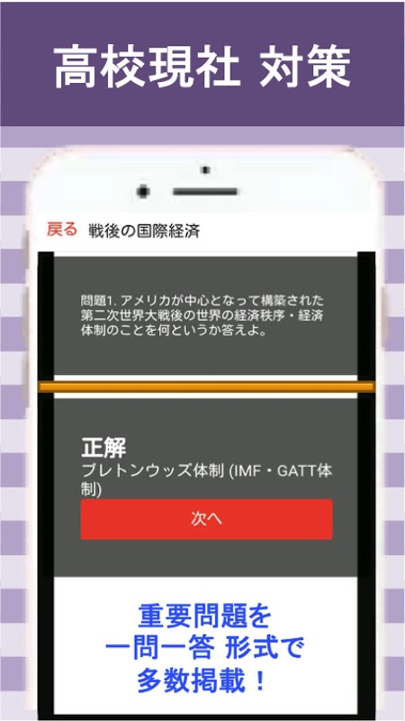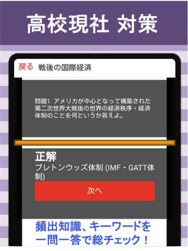 高校 公民「現社」に関する大量の知識をアプリで克服!授業の復習用からセンター試験まで、合格に必要な知識問題を厳選!知識の総チェック&弱点克服に最適です!