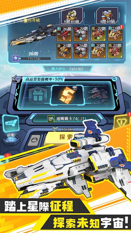 Les frégates... les croiseurs... les cuirassés... les destroyers stellaires... les navires principaux peuvent être améliorés en collectant des ressources. Commencez avec un navire d'exploration ordinaire et construisez votre vaisseau le plus puissant !