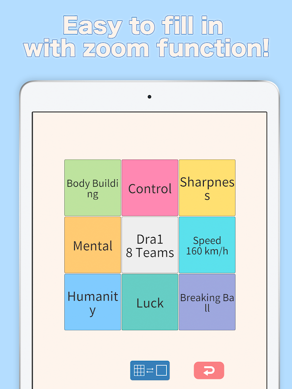 Objectif Tuiles est un outil pour écrire des thèmes dans un carré de 9 cases de 3x3, pour fixer des objectifs et organiser ses pensées. Vous pouvez organiser les tâches nécessaires pour atteindre vos objectifs.