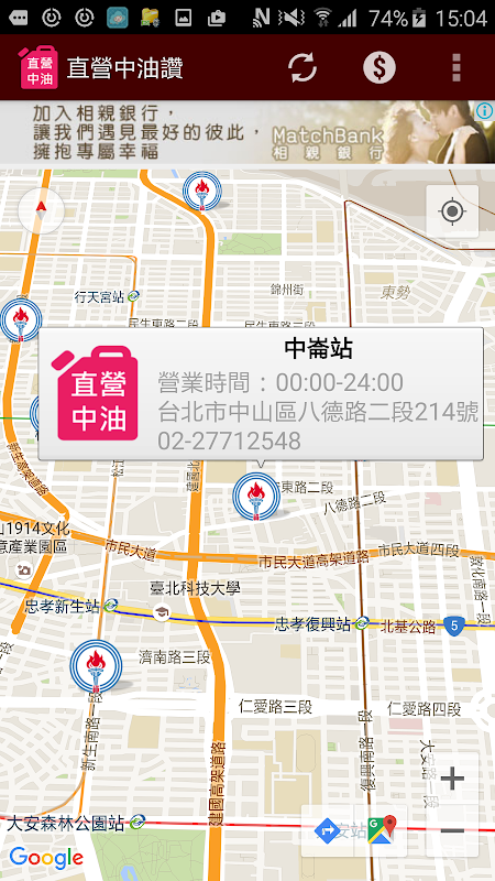8. 點選加油站,可提供快捷按鈕來快速啟動Google Map所提供的導航服務。