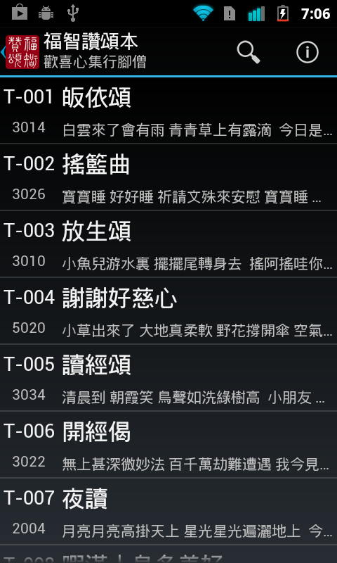 本程式只是將福智讚頌詞集結,方便所有同行善友查找,不含音樂檔。