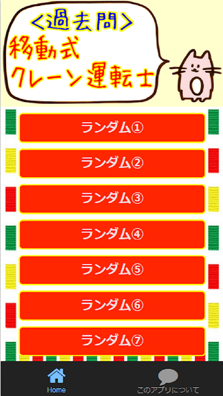 このアプリは、移動式クレーン運転士国家試験の合格にむけて過去問を集めたアプリです。