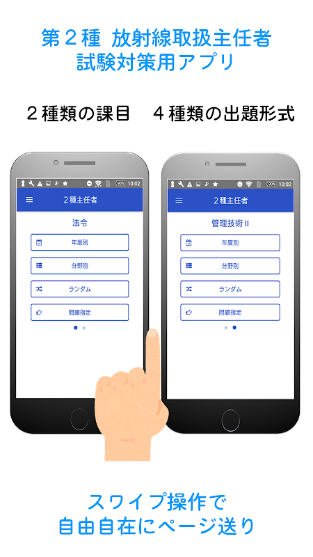 国家資格「第2種放射線取扱主任者」試験の過去問題を学習できるアプリです。