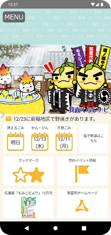 "Minoe Life Navi" est une application complète pour les habitants de la ville de Minoh.