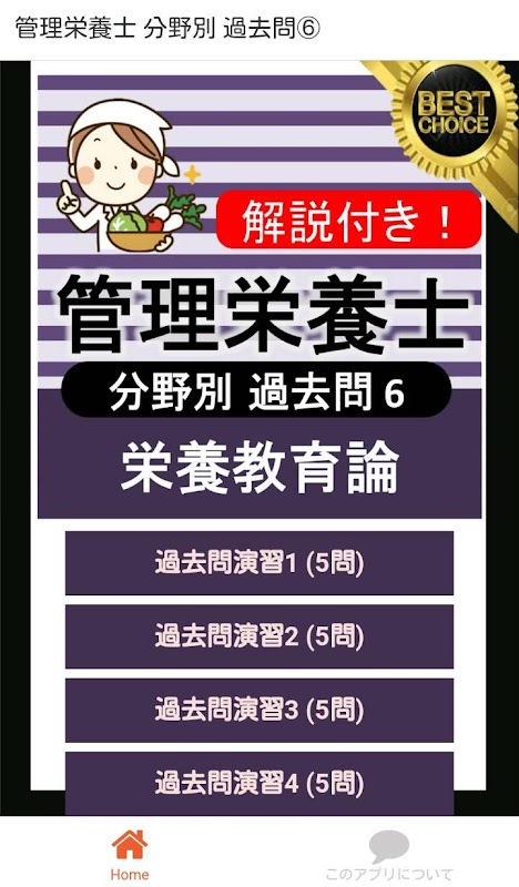 このアプリでは「栄養教育論」分野の出題になります。