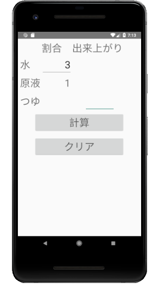 L'eau (ratio) = 3, soupe (prêt) = 300, le bouton de calcul en trois étapes!