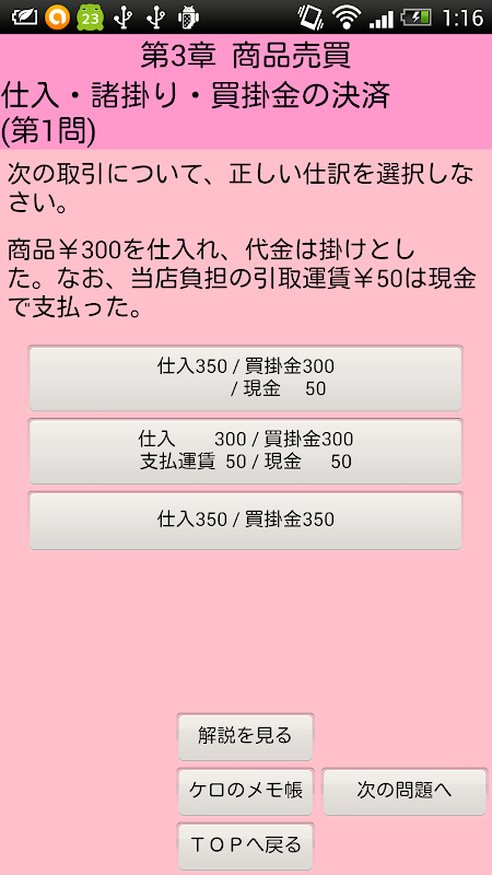 ※当アプリを使用してご満足頂ければ、『簿記3級 仕訳問題集 完全版』(https://play.google.com/store/apps/details?id=jp.ne.sakura.saisokuboki.saisokubokiMondaishu3kyu)の購入も検討して頂けると幸いです。