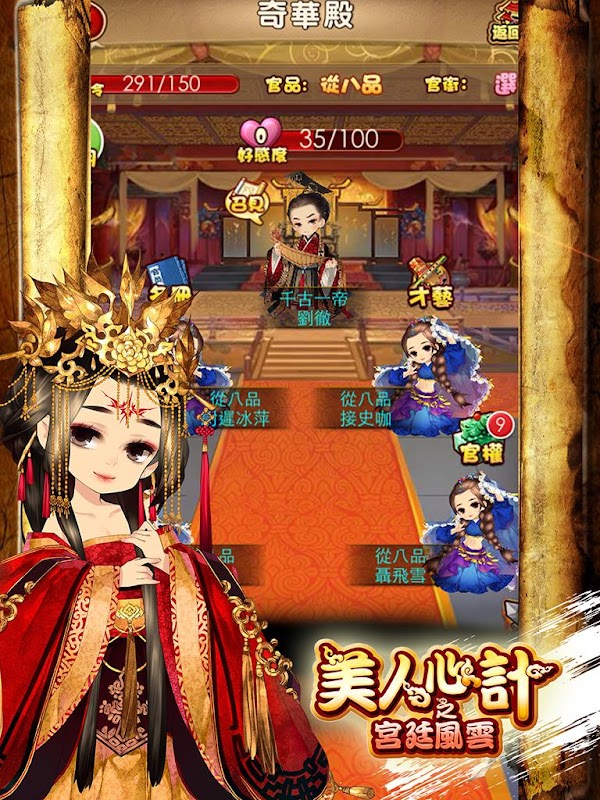 正版《宮廷》系列卡牌手遊《美人心計之宮廷風雲》深情來襲!完整故事情節帶您一起進入大漢宮廷史上最深刻的愛情故事、一起經歷那些愛恨情仇悲歡離合,一起經歷從小小歌女成為為漢室皇后最後絕望自殺的淒美故事!