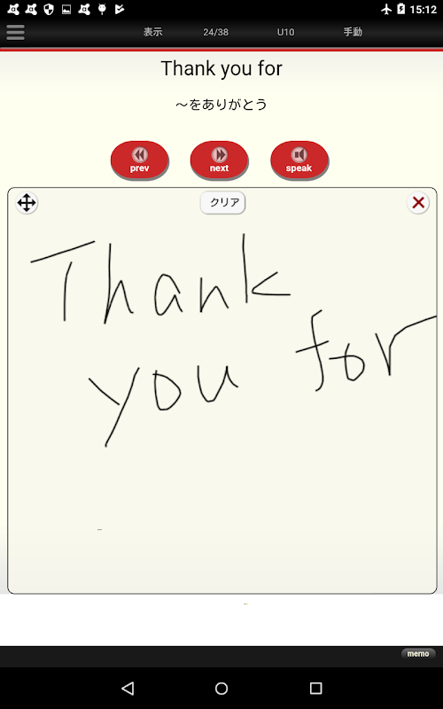 Lorsque vous cachez un mot, seule la voix coule. Vous pouvez également utiliser la fonction de mémo manuscrit pour vérifier si vous pouvez écouter le son et écrire le mot.
