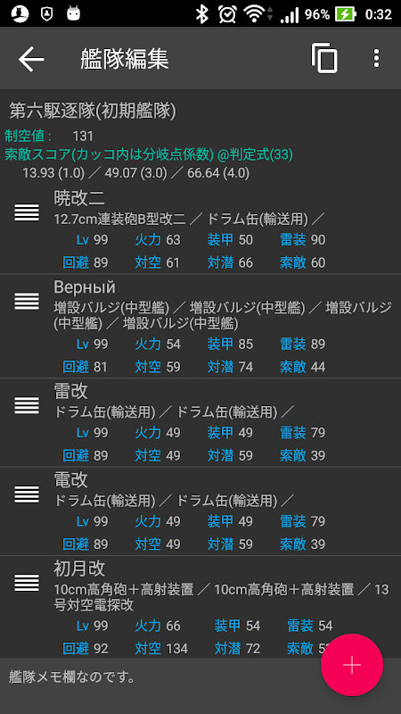 以上です。制空値、索敵スコア、火力、加重対空値などの値を確認できます。
