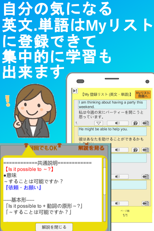 ● Problèmes en anglais et en anglais [problème de traduction en anglais] et [problème d'écoute de la prononciation anglaise] est créé, et vous aurez le pouvoir de l'utiliser réellement à l'étranger.