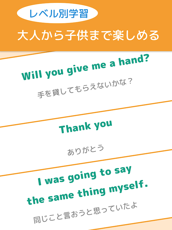 -Un grand nombre d'enregistrements sont inclus dans un large éventail de catégories, des mots anglais aux phrases anglaises pratiques qui peuvent être utilisées dans la conversation de tous les jours ! Vous pouvez facilement apprendre à écouter et à parler des enfants aux adultes !
