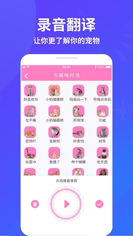 3.与猫交流,点击各种猫的头像有不同的场境对话,也可以翻译您讲的话给猫听。