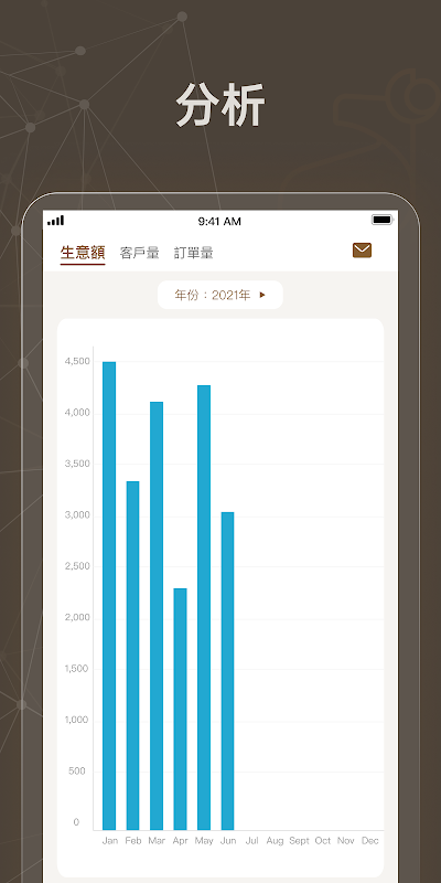 Cette application est utilisée pour gérer et afficher les informations sur les clients, analyser et compter les affaires, vérifier les informations de commande et également permettre au personnel de vente de voir leur propre entreprise.