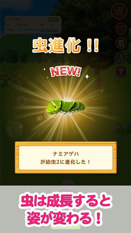 Tout en appréciant le jeu, vous pouvez voir le changement d'apparence dû à la «métamorphose» des insectes!