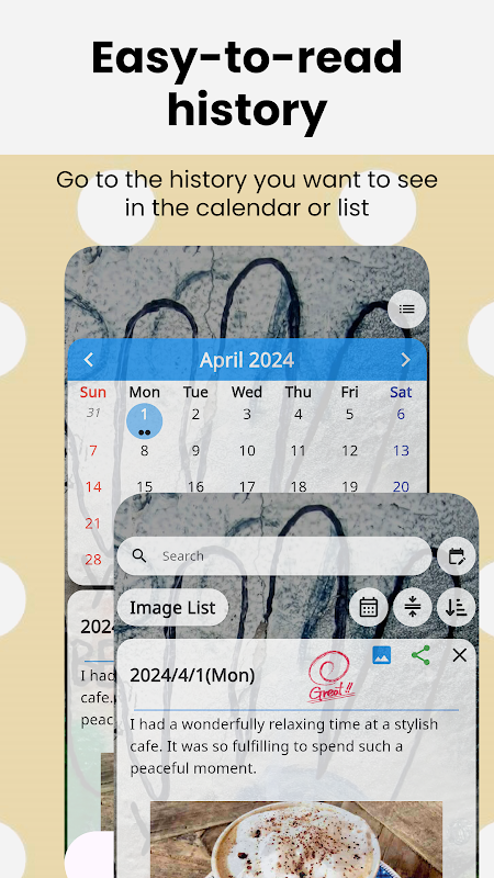 ★ Affichage Calendrier : Visualisez facilement les jours que vous avez inscrits dans votre journal sur le calendrier.