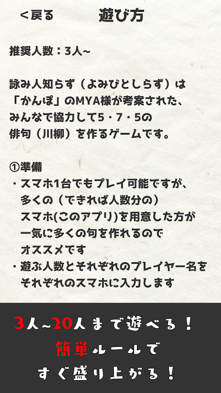 Informations 詠み人知らず ー五七五・俳句・川柳・パーティーゲームー APK