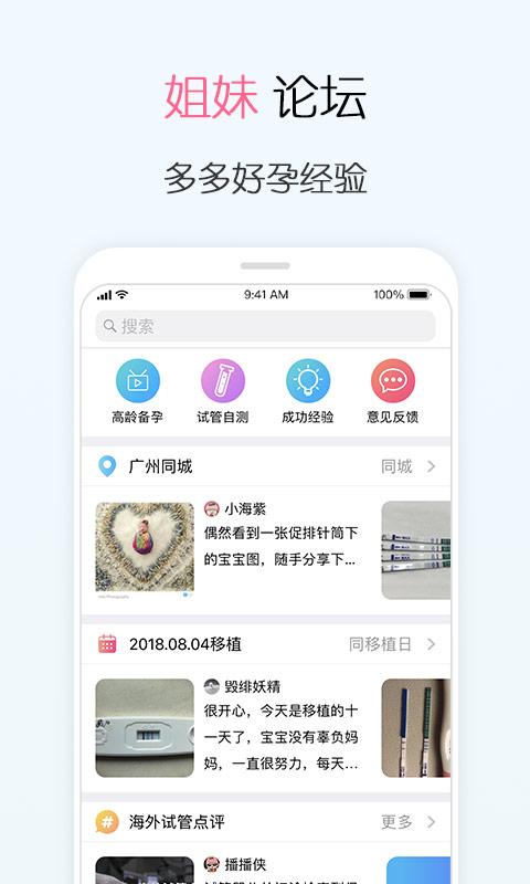 1、内置试管社区,汇集众多姐妹关于试管婴儿各个方面的讨论,让你感觉到试管不是孤独的旅程。