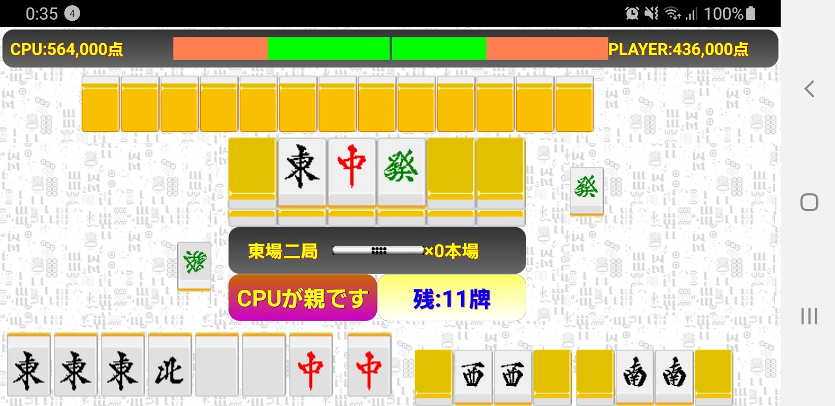 ◇CPUとの1対1対戦型無料麻雀ゲーム(東南戦)