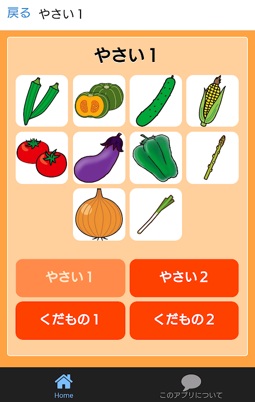 かわいいイラストとリアルな写真で楽しい!こども向けの野菜と果物の図鑑です。音声で名前を聞けるので小さいお子様でも遊べます♪