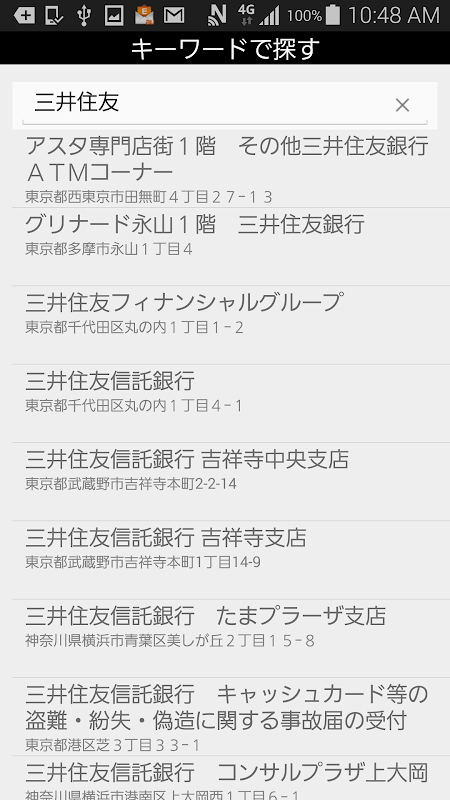 「銀行・検索」は銀行、郵便局、ATM(コンビニ)を検索するアプリです。