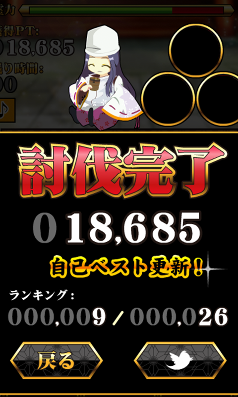 妖怪を放置すると霊力を奪われてしまいます。霊力がなくなるとゲームオーバーです。