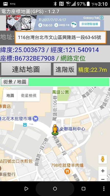 由智慧手機讀取GPS經緯度,而後轉【電力座標】定位。並可結合Google 地圖及街景顯示,方便好用。