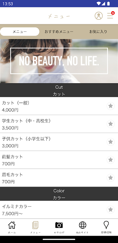 Vous pouvez facilement vérifier le menu salon et les prix d'être inquiet au sujet de l'application.