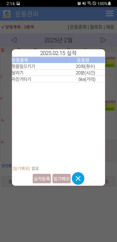 ㅇ Enregistrement des événements sportifs et des objectifs mensuels d'exercice