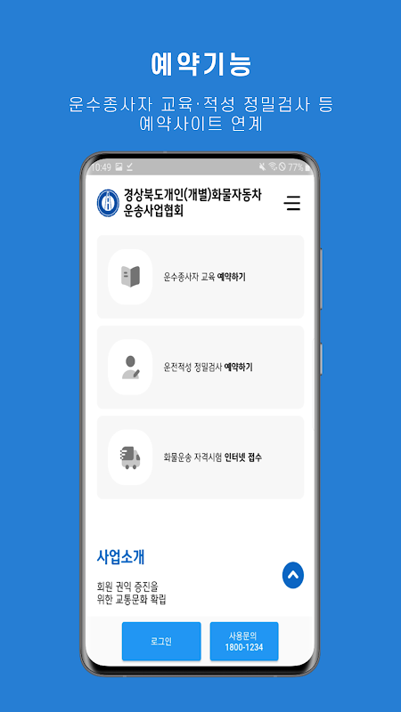 ■ Les principaux services du site Web de la Gyeongbuk Individual (Individual) Cargo Transport Business Association ont été mis en œuvre sous forme d'application afin qu'ils puissent être utilisés sur mobile.