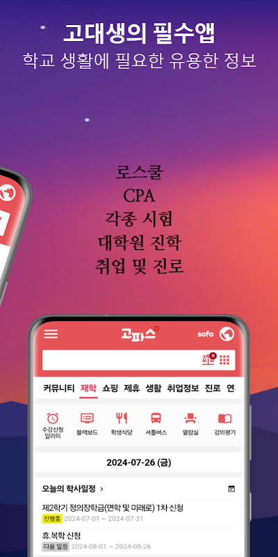 Application officielle Korea University Community Gopas! Il est équipé de fonctions de communauté, d'informations sur l'emploi, de discussion par département, de salle de lecture, d'enseignement universitaire et d'évaluation des conférences.