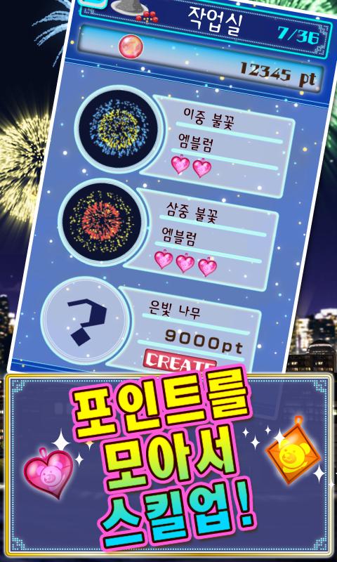 화약을 없애면 풀 3D로 구성된 야경 위로 다채로운 불꽃놀이가 시작됩니다!