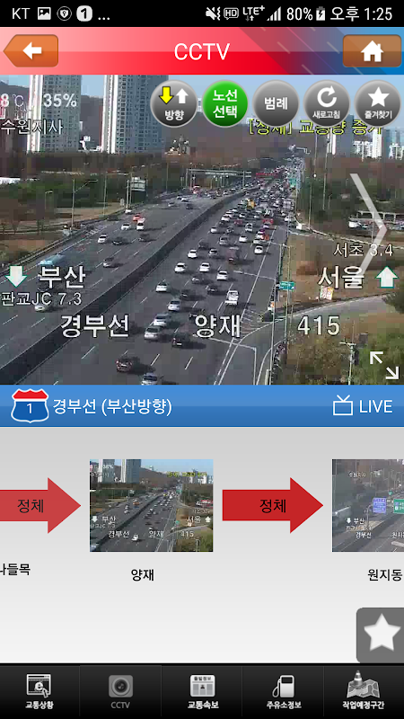 고속도로 노선별 소통상황과 CCTV 정보를 제공하며,