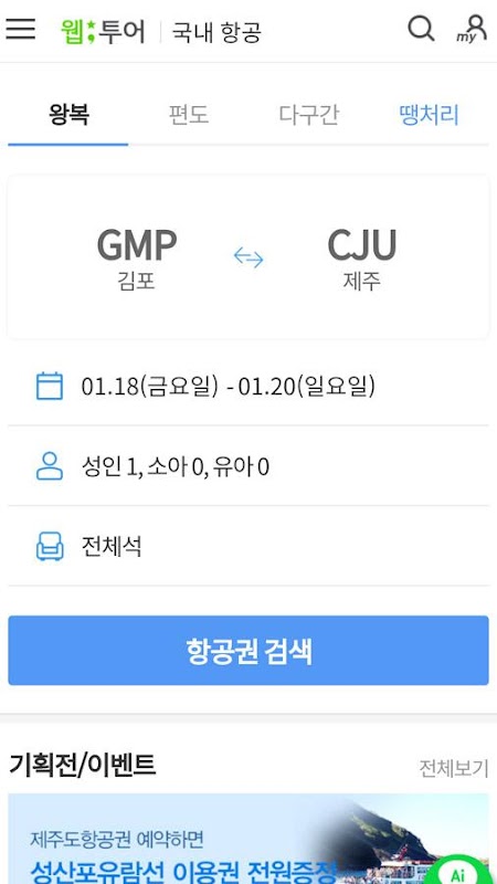- 제주도 왕복, 제주도 편도 제주 항공권 예약 가능