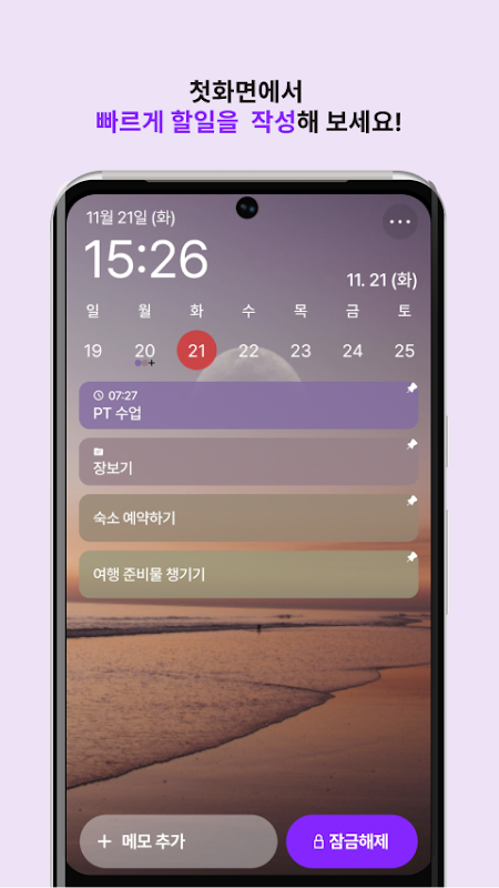 - 할 일, 메모, 숙제, 장보기 등을 추가해 보세요