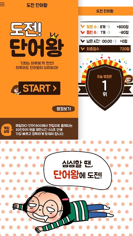 매일매일 영어 단어를 재미있게 외우자!게임으로 내 레벨을 UP 하면, 영어 실력도 저절로 UP!지금 다운로드 하세요!