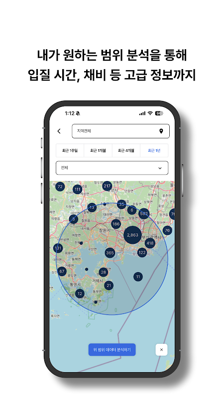 원하는 위치를 선택하면,주변의 조황을 AI가 분석하여 보고서로 정리해드립니다.
