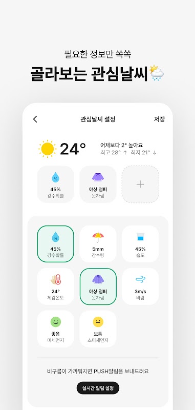 날씨돌: 날씨, 체감온도, 미세먼지, 강수알림, 옷차림