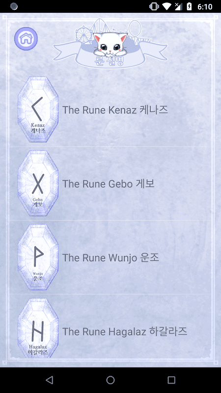[냥이룬]에서는 24가지 룬 문자를 사용합니다.