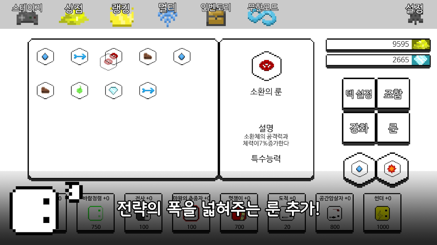 골드를 소모해서 유닛을 강화할수 있습니다. 자신의 유닛을 강화해 나만의 강력한 덱을 구성해 보세요!