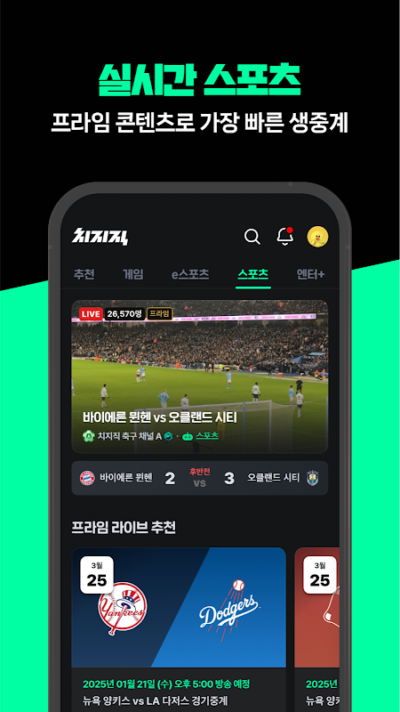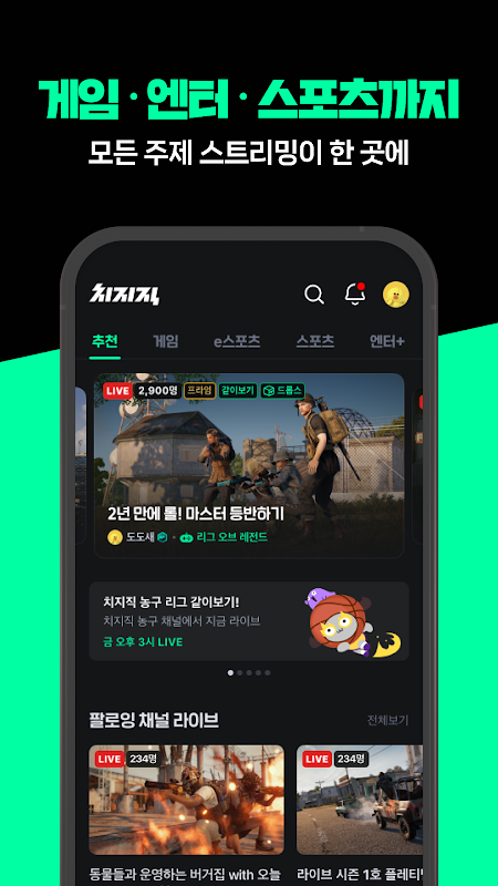 - e스포츠/스포츠/엔터 주요 방송 일정을 모아볼 수 있는 편성표 기능이 추가됐어요.
