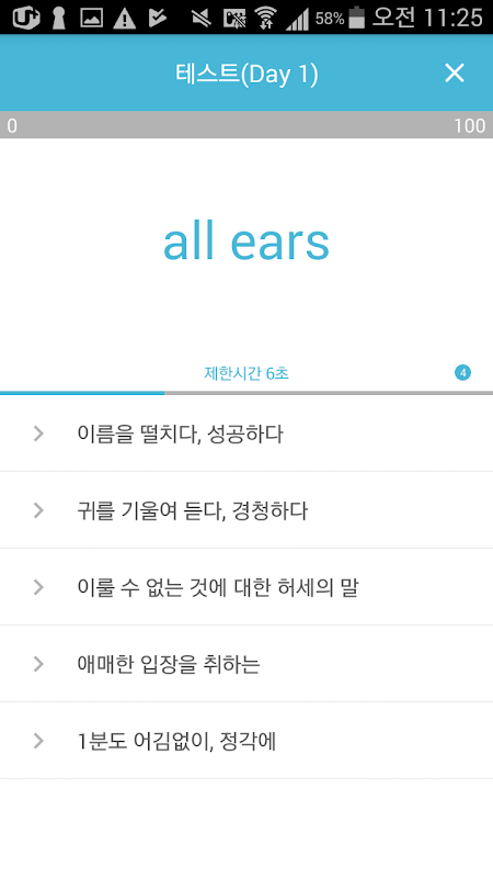 테스트는 객관식 형태로 진행되며, 한 단어당 6초가 주어집니다.