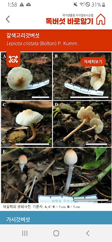 Il existe de nombreux livres illustrés sur la nourriture et les champignons vénéneux en Corée, mais le prix des livres illustrés est élevé et il y a une limite à l'accès facile par le grand public en raison des inconvénients du transport.