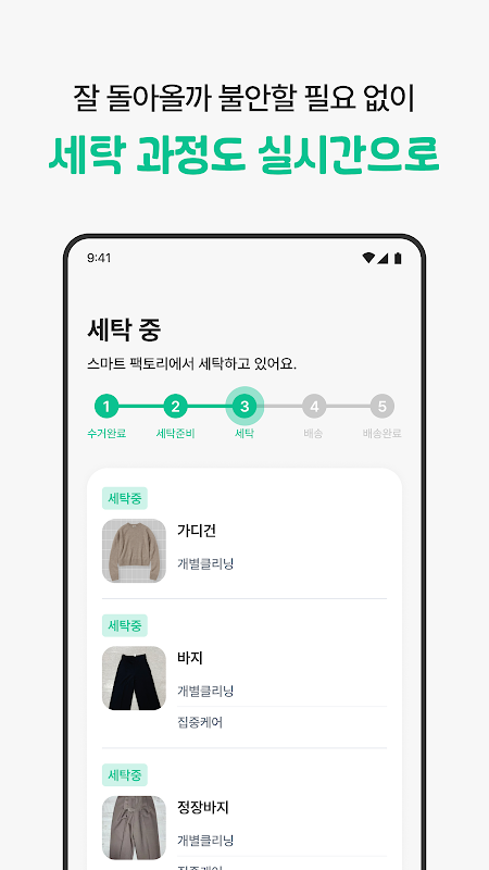 Vérifiez en temps réel l'avancement de votre linge demandé.