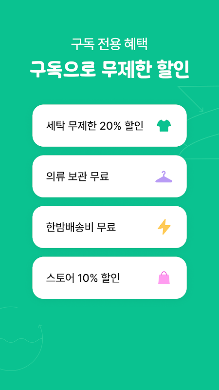 - Service d'abonnement mensuel : Remise sur le linge fréquemment déposé + 20 % de remise sur le linge supplémentaire + 10 % de remise sur le magasin + service de stockage + livraison gratuite