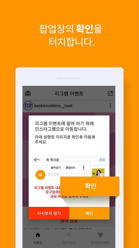 쉽고 빠르게 리그램 이벤트에 참여하세요.